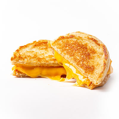 Slices of American style cheese melted on an inside-out sesame seed bun with toppings of your choice and grilled until golden brown.