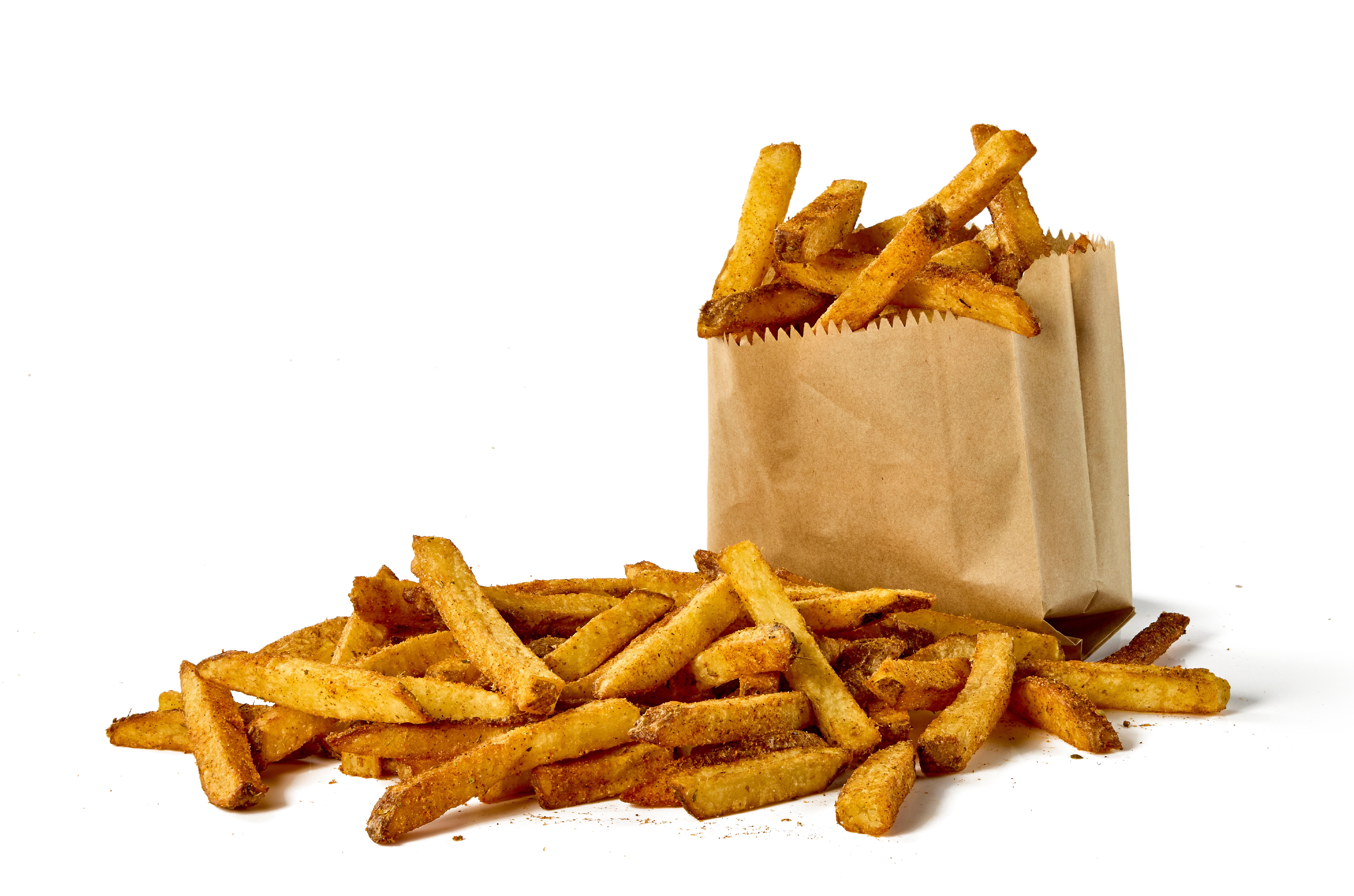 Freshly made boardwalk-style fries, cooked in pure, cholesterol-free, 100% peanut oil, and then showered with a heavy dose of Cajun spice. Cut fresh and cooked twice – firm on the outside and mashed potato on the inside.